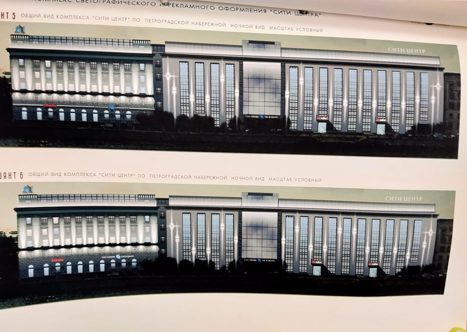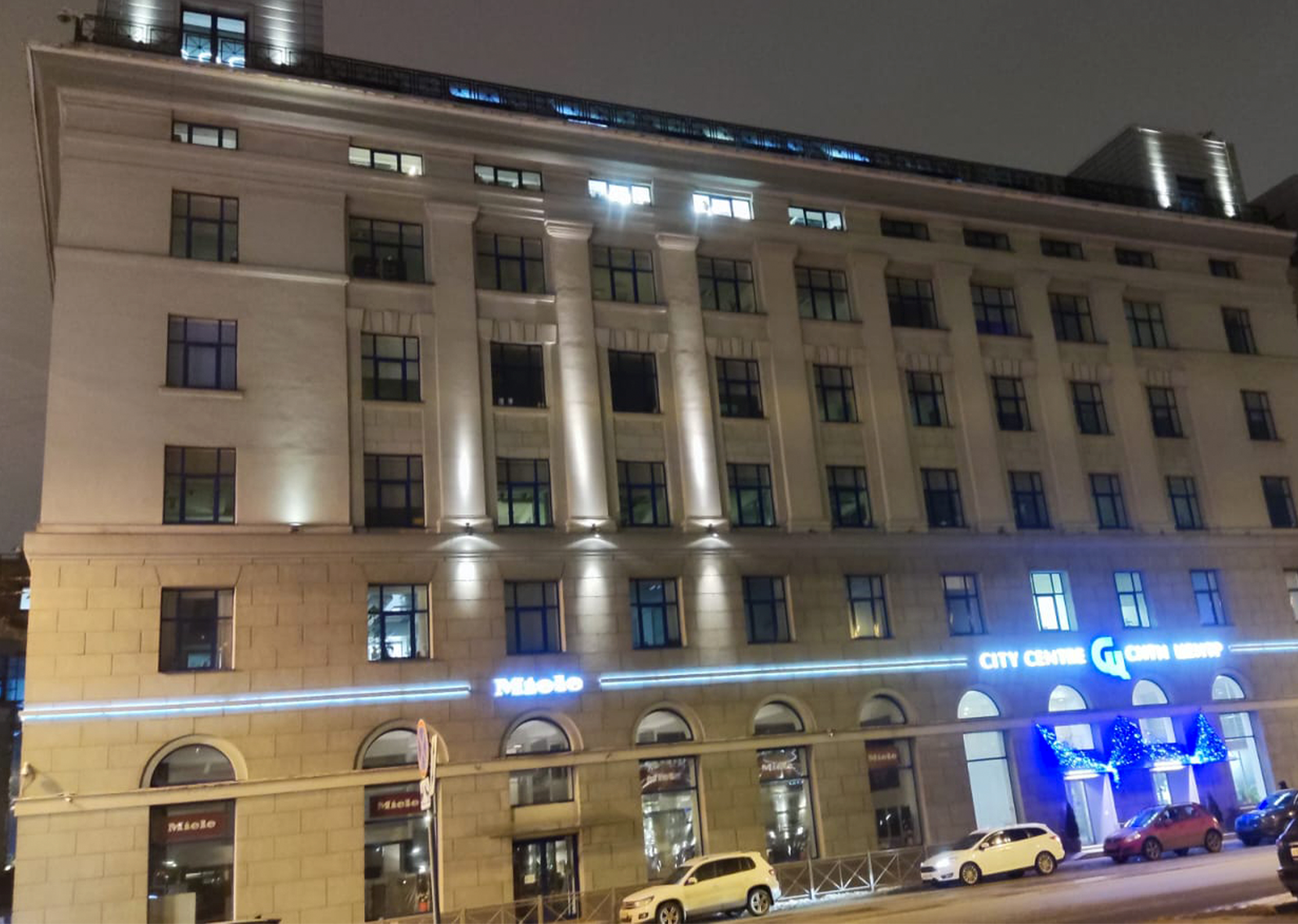 Являясь частью архитектурного ансамбля Петроградской набережной, здание Бизнес Центра самим своим расположением накладывает на проект освещения не только функциональные, но и эстетические требования.