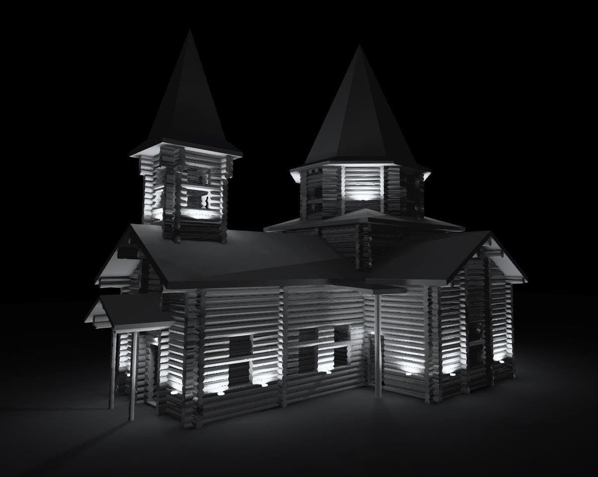 Результат: храм в вечернее и ночное время выглядит цельным, величественным и гармоничным. Подсветка подчёркивает фасады, входные группы и фактуру деревянного храма, создавая атмосферу уюта и значимости для прихожан и гостей