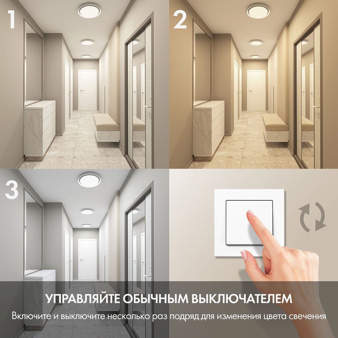 DK6515-WH Накладной светильник, LED, 40W, IP 20, 3000K - 6500K, белый, металл, полимер Denkirs