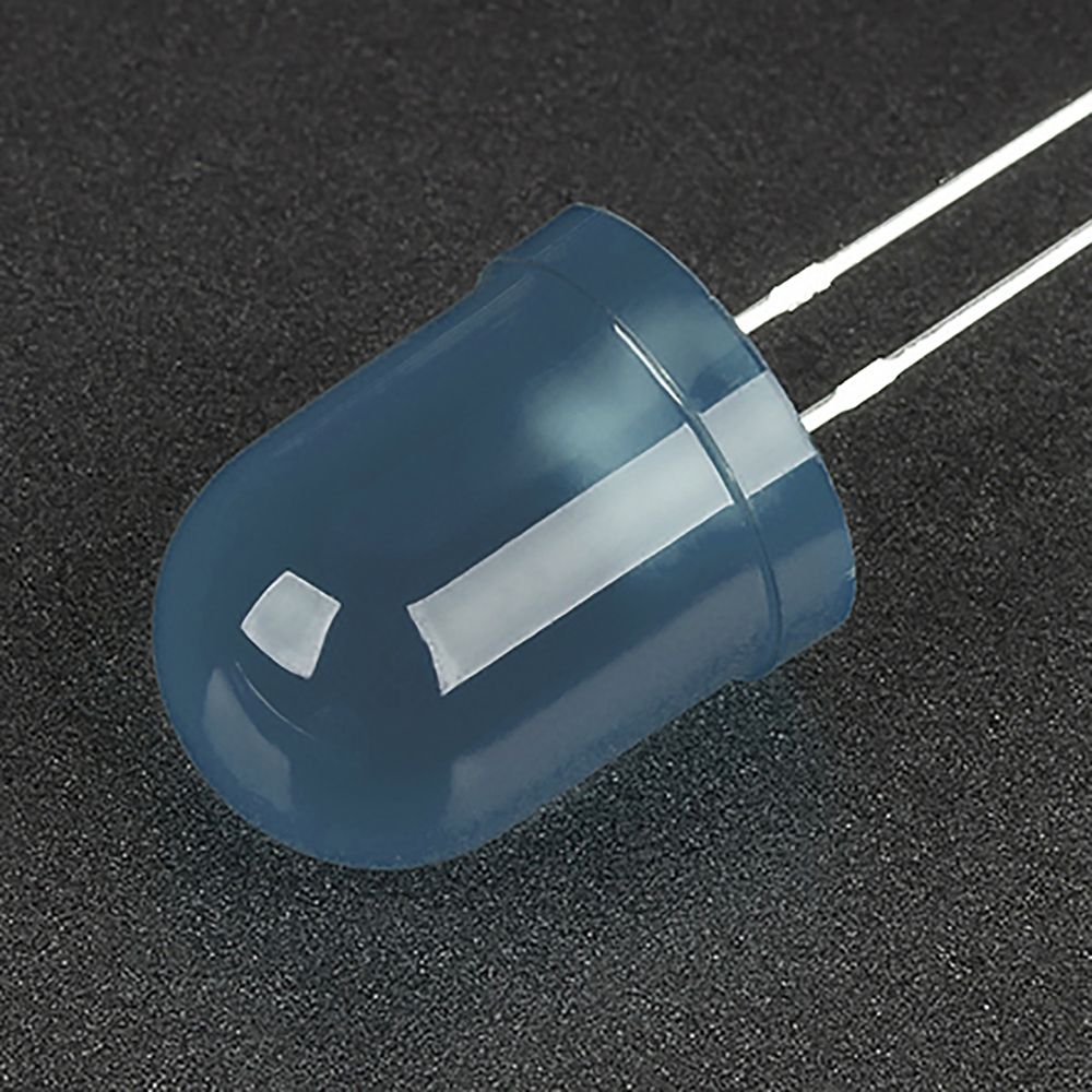 Поставка под заказ от 5000 шт. Выводной круглый светодиод, d=10 мм, диффузная синяя линза. Цвет свечения синий (470 нм). Угол излучения 60°. Сила света Iv=1500-2500 мкд, If=20 мА. VF=3-3.8 В. Рекомендуемый постоянный рабочий ток <16-17 мА.