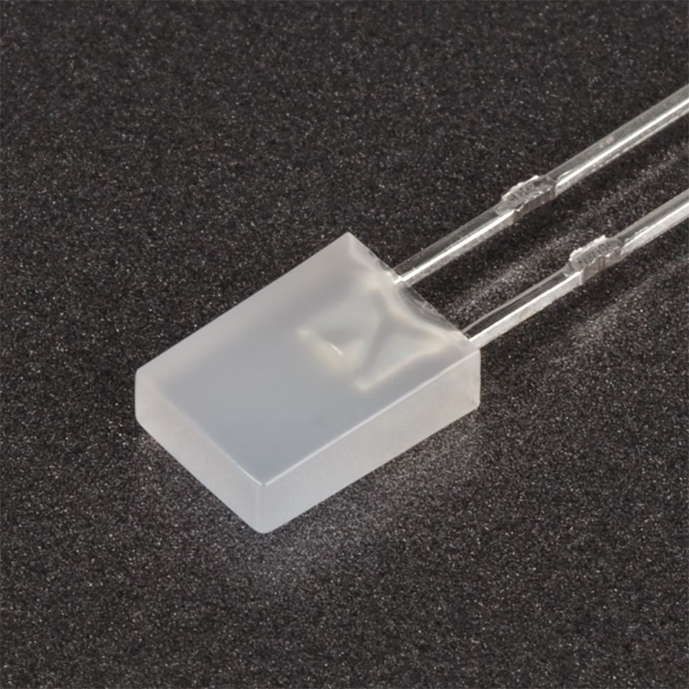 Поставка под заказ от 5000 шт. Выводной прямоугольный светодиод, 2×5×7 мм, белая диффузная линза. Цвет свечения белый. Угол излучения 130°. Сила света Iv=100-250 мкд при If=20 мА. VF=2.9-3.5 В. Рекомендуемый постоянный рабочий ток <16-17 мА.