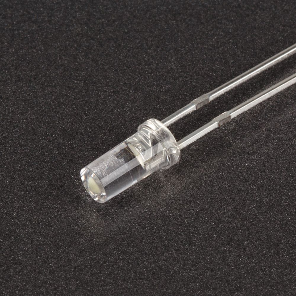 Поставка под заказ от 5000 шт. Выводной цилиндрический светодиод, d=3 мм, прозрачная линза. Цвет свечения белый. Угол излучения 100°. Сила света Iv=1000-2500 мкд при If=20 мА. VF=2.9-3.3 В.