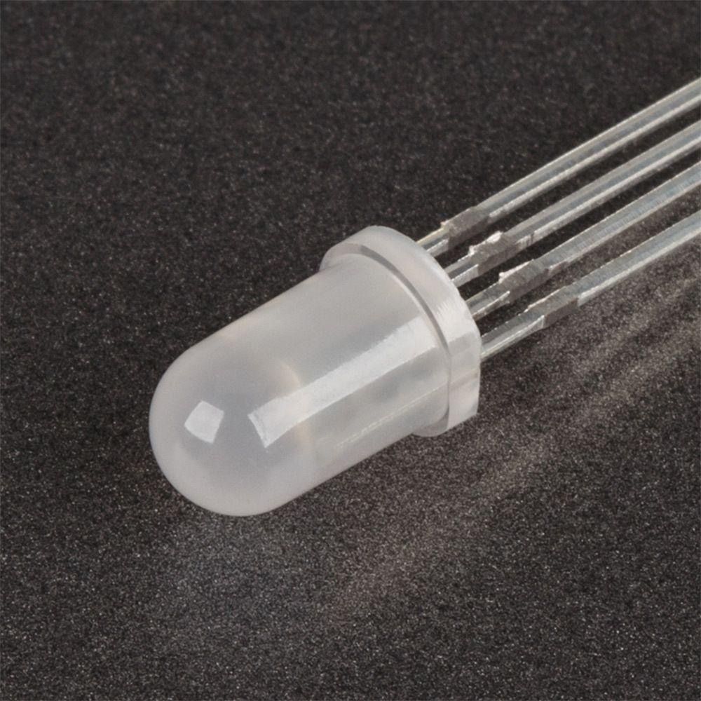 Поставка под заказ от 5000 шт. Выводной круглый светодиод, d=5 мм, белая матовая линза. Цвет свечения RGB: красный (640 нм), зеленый (525 нм), синий (465 нм). Угол излучения 60°. Сила света Iv=300-1200 при If=20 мА. VF=1.9-2.5 В (красный). VF=2.9-3.5 В (зеленый/синий). Четыре вывода, общий анод.