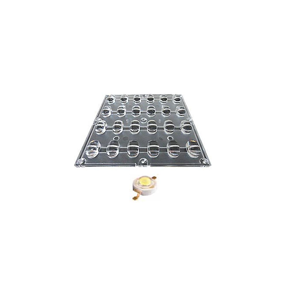 Блочная линза для мощных светодиодов Emitter, угол обзора: вертикальный 120°, горизонтальный 40°, прозрачная линза. Материал PMMA, количество светодиодов на плате: 12. Длина 120 мм, ширина 120 мм, высота 10.2 мм.