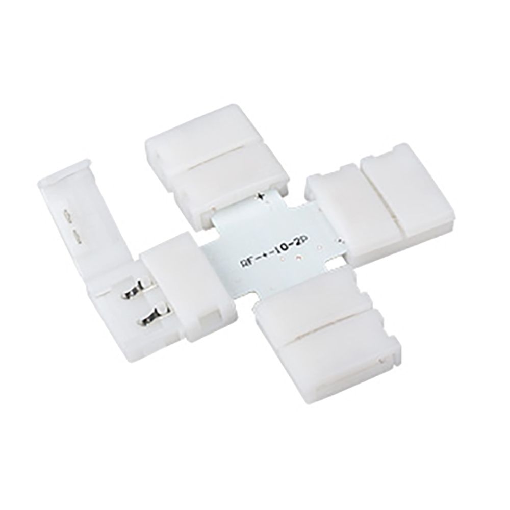 Разветвитель крестовой с разъемами на фиксаторах, для соединения одноцветных лент шириной 10мм. Максимальный допустимый ток 4А. Не рекомендуется соединять длинные отрезки лент!