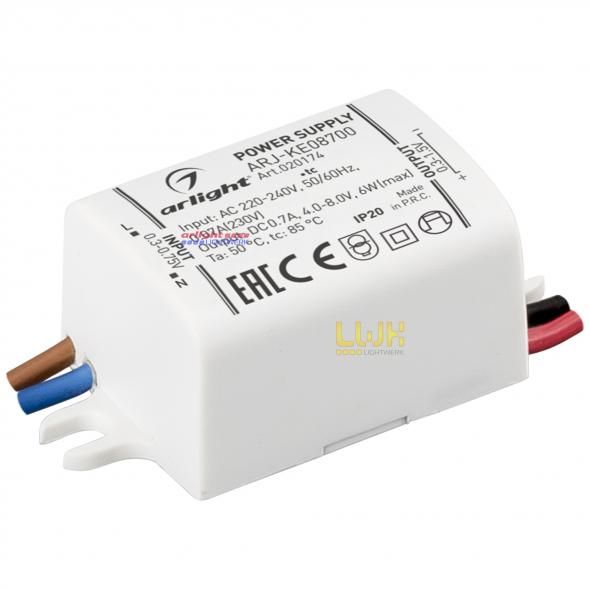 Блок питания 5,6 Вт, с гальванической развязкой, для мощных светодиодов и светильников. Пластиковый корпус. Габариты LxWxH: 55x27x21 mm. Вход 220-240V AC, выход 4,0-8,0 VDC, 700 mA, PF>0.5, пульсация менее 5%, рабочая т-ра -20+50 С. Гарантия 3 года.