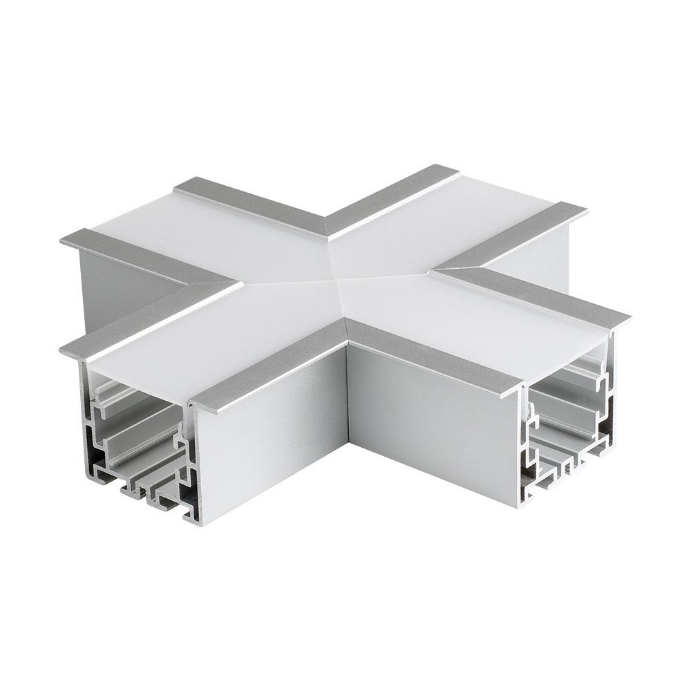 Крестовой угол в сборе, для соединения 4-х профилей S2-LINIA55-F под прямыми углами 90°. Экран образует линию "Х" на плоскости. В комплекте матовый экран, соединители. Размеры 150х150 мм.