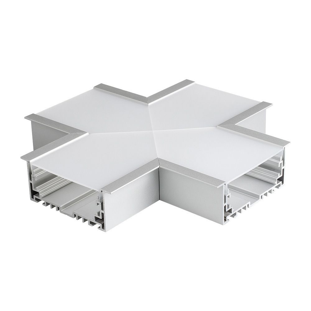 Крестовой угол в сборе, для соединения 4-х профилей S2-LINIA94-F под прямыми углами 90°. Экран образует линию "Х" на плоскости. В комплекте матовый экран, соединители. Размеры 200х200мм.