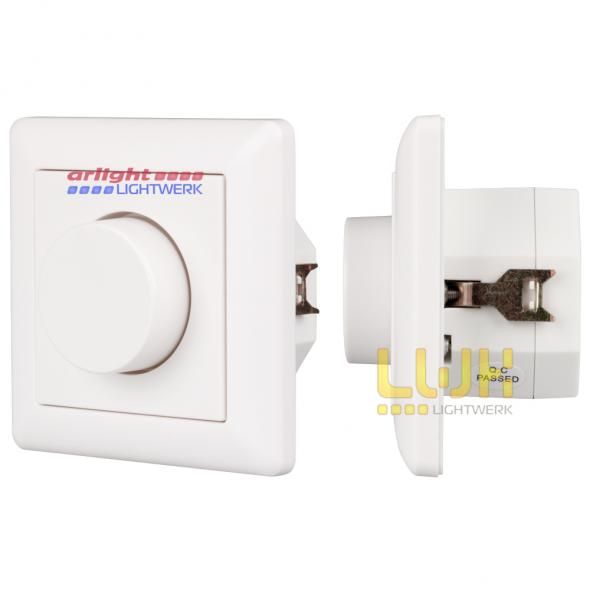 Встраиваемая панель с вращателем, диммер с активным выходом 0-10V, без выключателя. Питание 230 VAC. Лицевая поверхность - белый глянцевый пластик. Размеры 80х80х52 мм. Заменяется на 025037.
