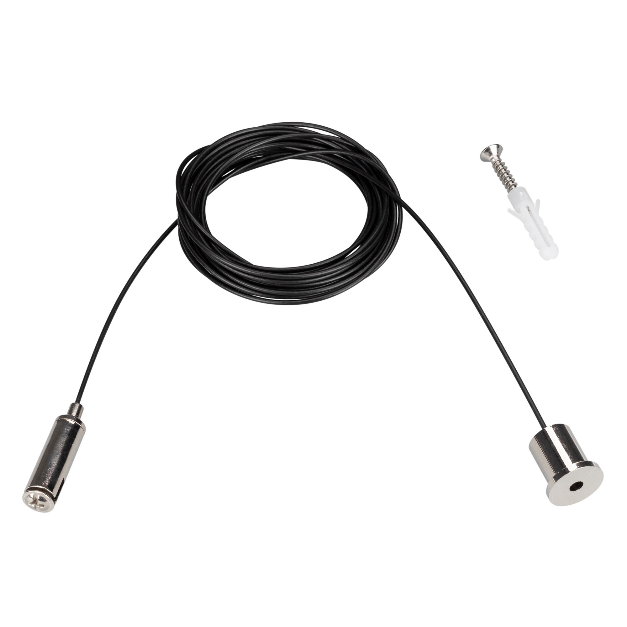 Тросовый подвес для подвесного монтажа магнитных треков MAG-TRACK-4563 и MAG-TRACK-4592. Длина троса 4 м. Выдерживает вес максимум 15 кг. Цвет троса черный, цвет аксессуаров серебристый. В комплекте тросовый держатель, трос, фиксатор для троса. Используется совместно с держателем MAG-BRACKET-45 (приобретается отдельно).