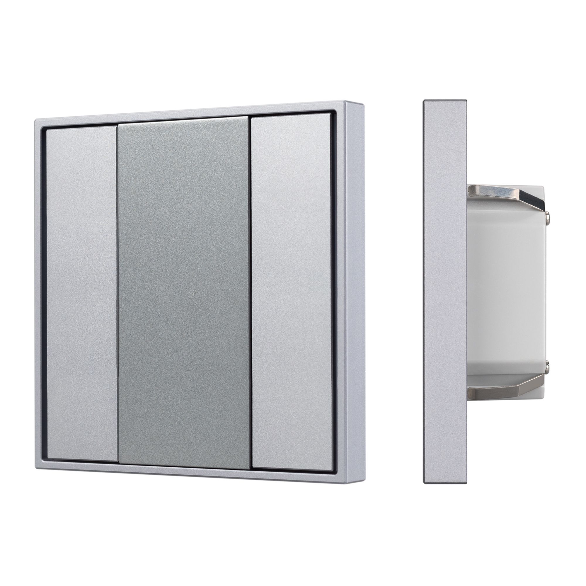 Универсальная многофункциональная встраиваемая настенная панель для систем KNX. 2 клавиши. Тонкая рамка, материал - металл. Цвет корпуса - серебристый. Питание от шины KNX DC 21-30V. Габариты 80x80x27 мм.