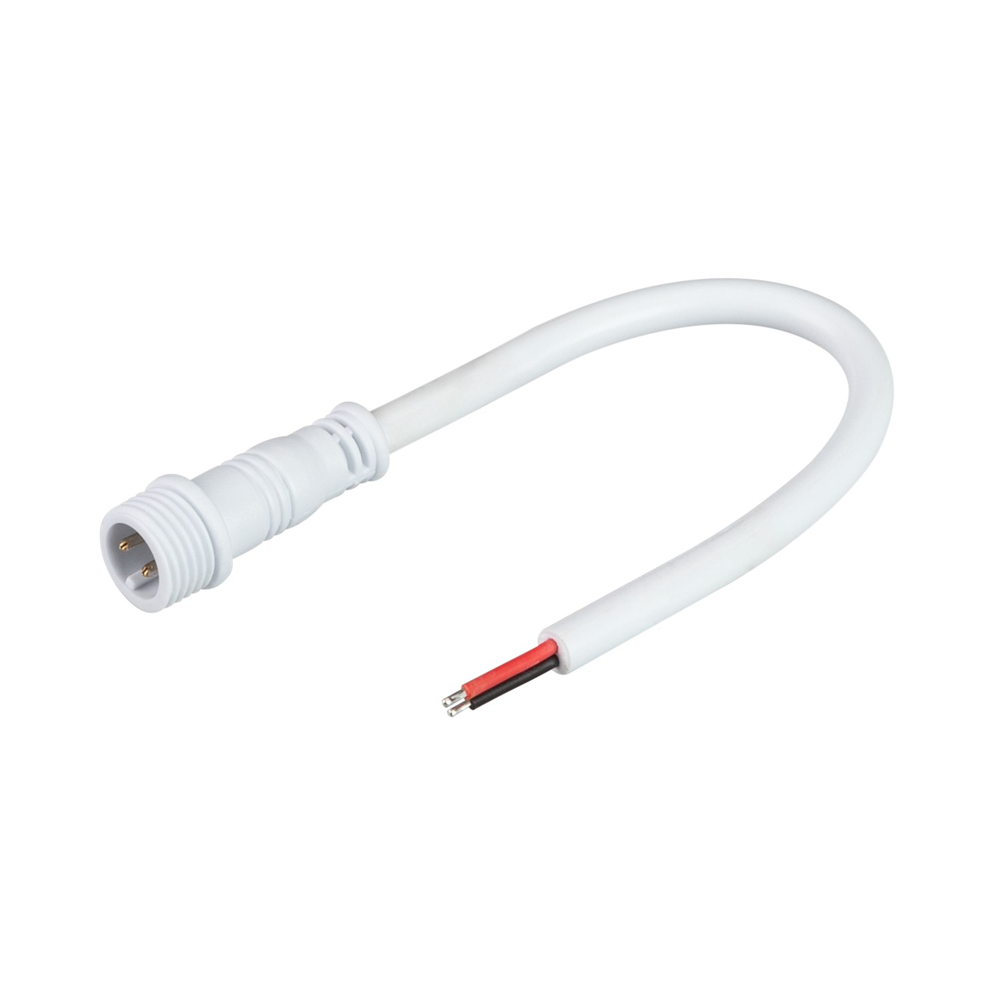 Круглый герметичный разъем серии ARL, 2 pin ПАПА с резьбовым креплением для подключения питания герметичных одноцветных светодиодных лент. Корпус IP65. Провод 20AWG (0.5 мм2), длина 15 см. Максимальный допустимый ток 3 А. Номинальное напряжение 50 В. Ответный разъем МАМА поставляется отдельно.