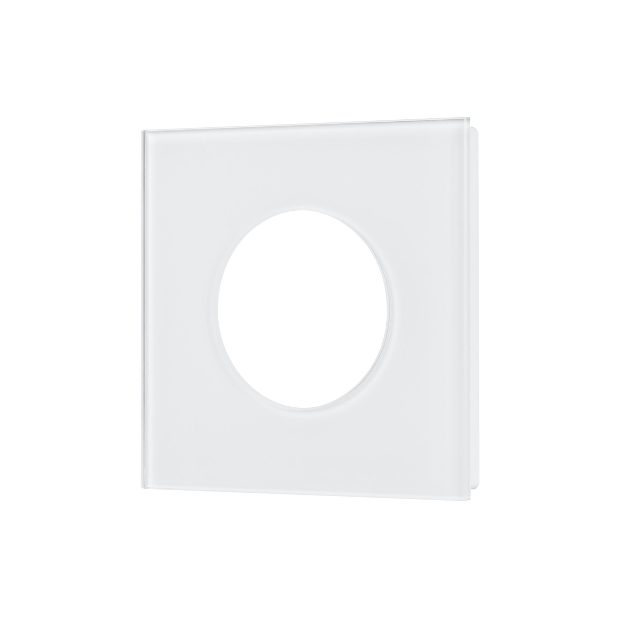 Рамка стеклянная на 1 пост, под встраиваемый механизм. Вырез под функциональную часть круг*. Цвет - белый. Ориентации монтажа - горизонтальная.