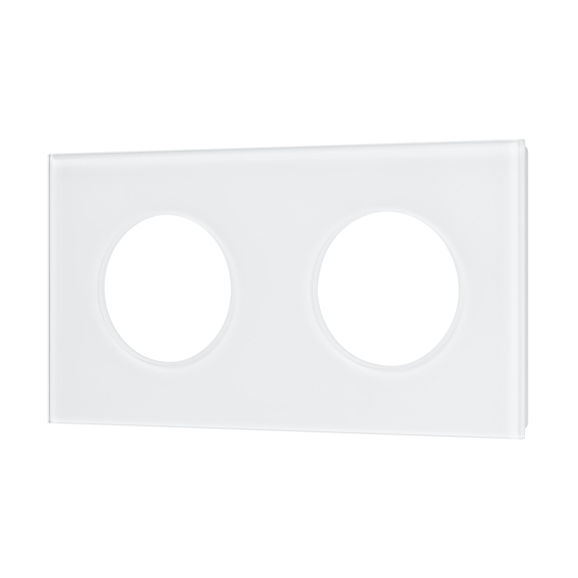 Рамка стеклянная на 2 поста, под встраиваемый механизм. Вырез под функциональную часть круг. Цвет - белый. Ориентации монтажа - горизонтальная.