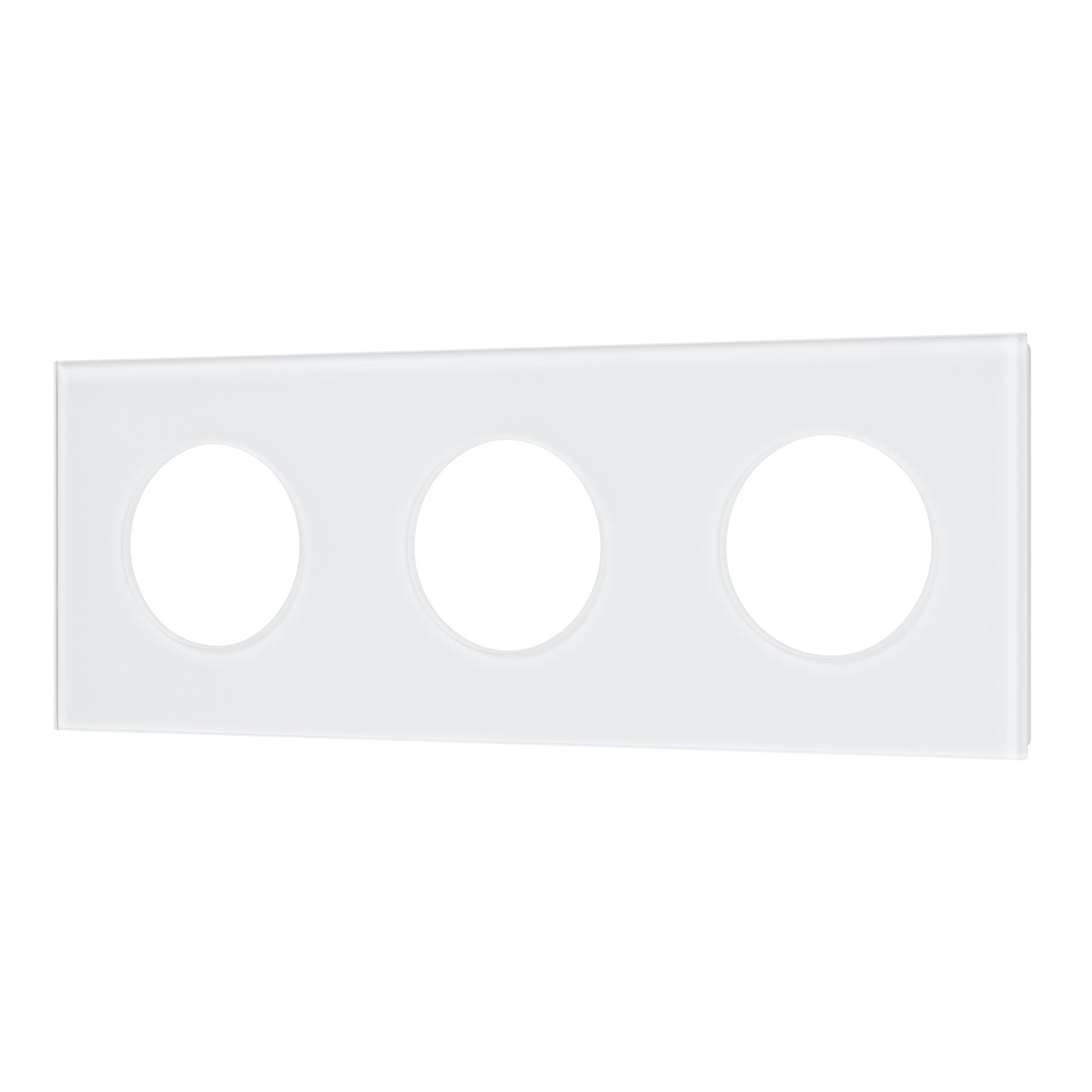 Рамка стеклянная на 3 поста, под встраиваемый механизм. Вырез под функциональную часть круг. Цвет - белый. Ориентации монтажа - горизонтальная.