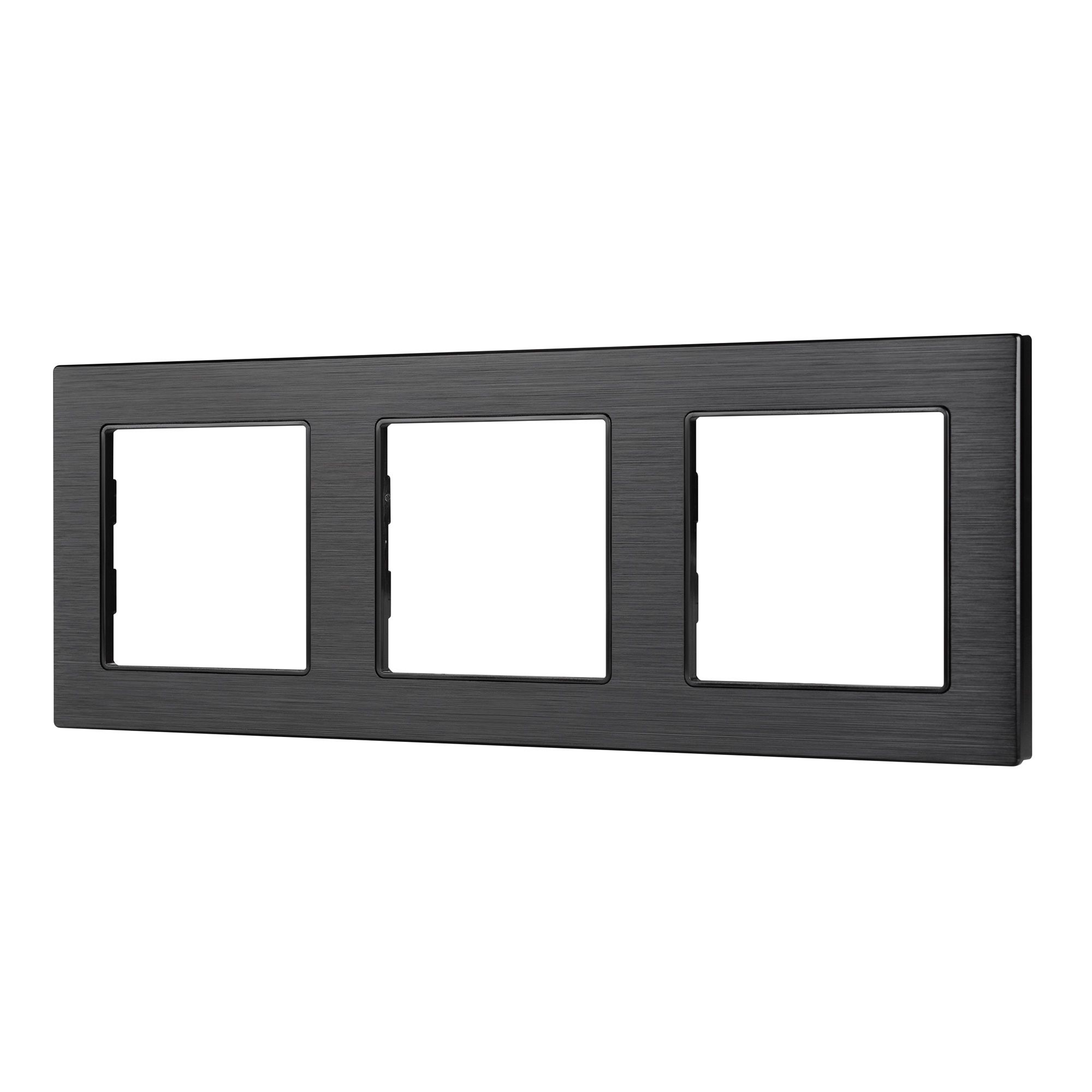 Рамка алюминиевая на 3 пост, под встраиваемый механизм (квадрат). Цвет - черный.  Ориентации монтажа - горизонтальная.