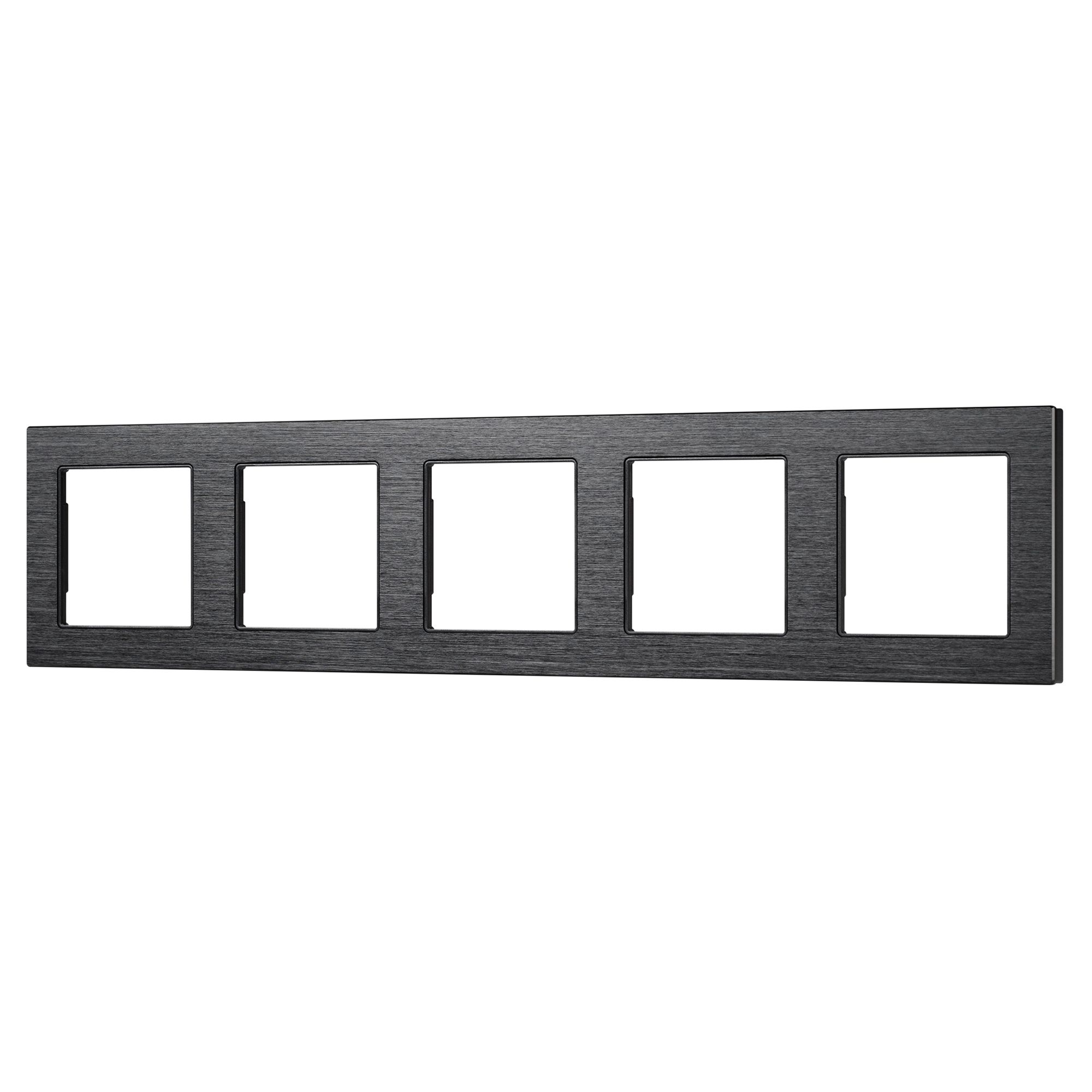 Рамка алюминиевая на 5 пост, под встраиваемый механизм (квадрат). Цвет - черный. Ориентации монтажа - горизонтальная.