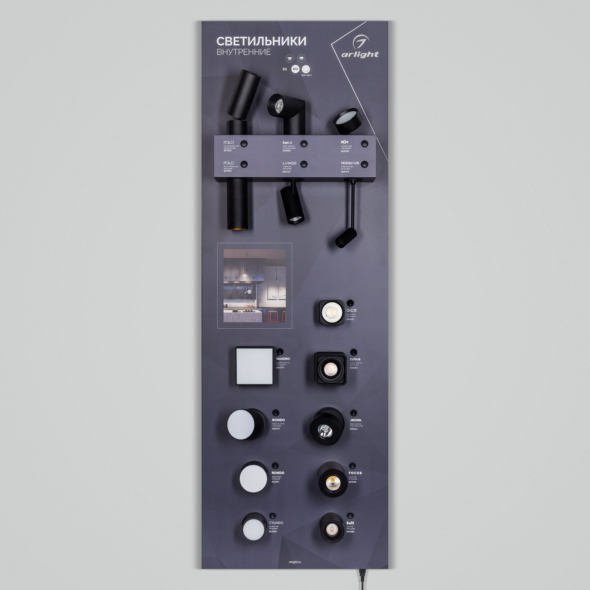 На стенде демонстрируются накладные и встраиваемые светильники разных серий для внутреннего применения.