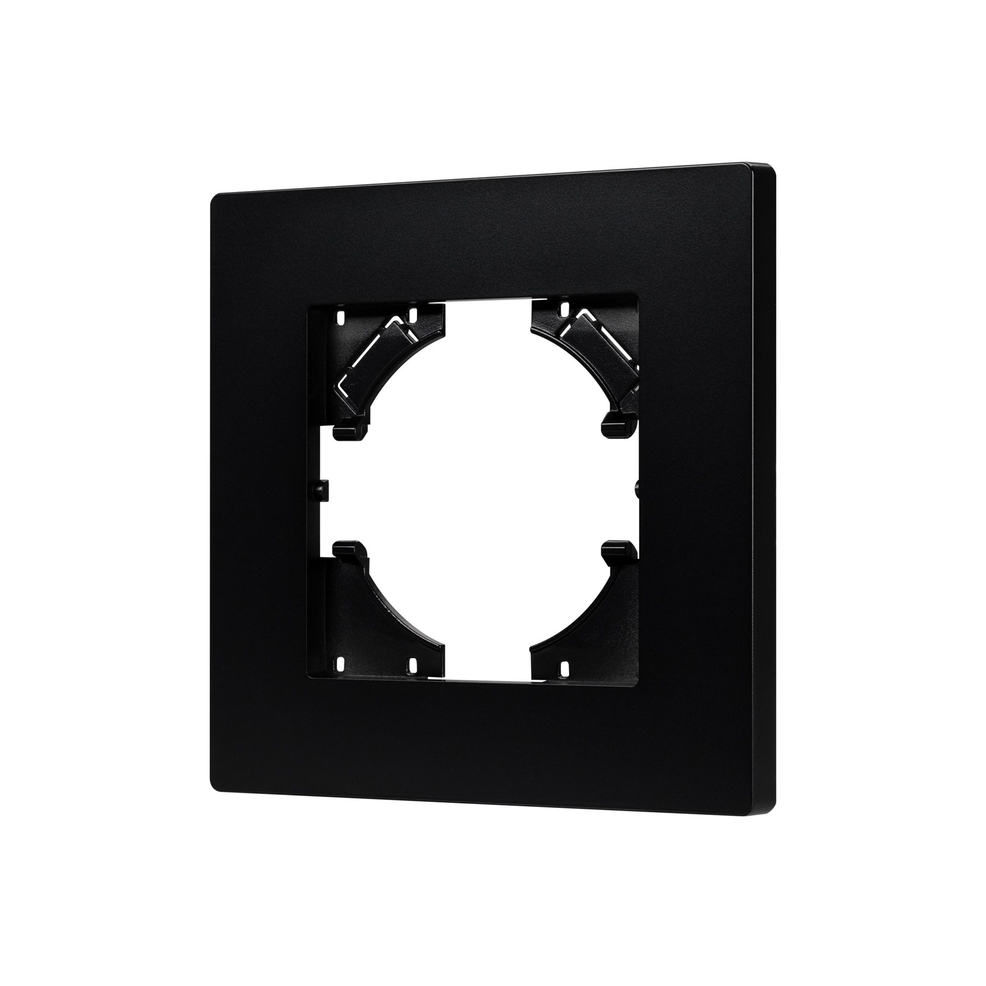 Рамка пластиковая на 1 пост, под встраиваемый механизм. Цвет - черный. Среднего уровня герметичности IP20. Ориентация монтажа - горизонтальная (основным ориентиром служат посадочные выступы для накладки механизма).