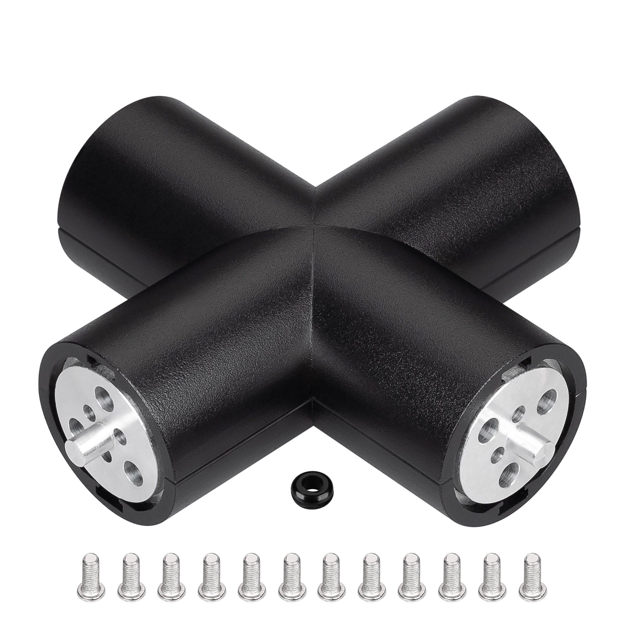 Крестовой коннектор для соединения 4-х отрезков профиля ROUND-D36-360 под углом 90° с отверстием для вывода кабеля питания. В комплекте: соединитель крестообразный - 1 шт., втулка - 4 шт., винт длинный - 4 шт., винт короткий - 12 шт., гермоввод - 1 шт. Цена за комплект.