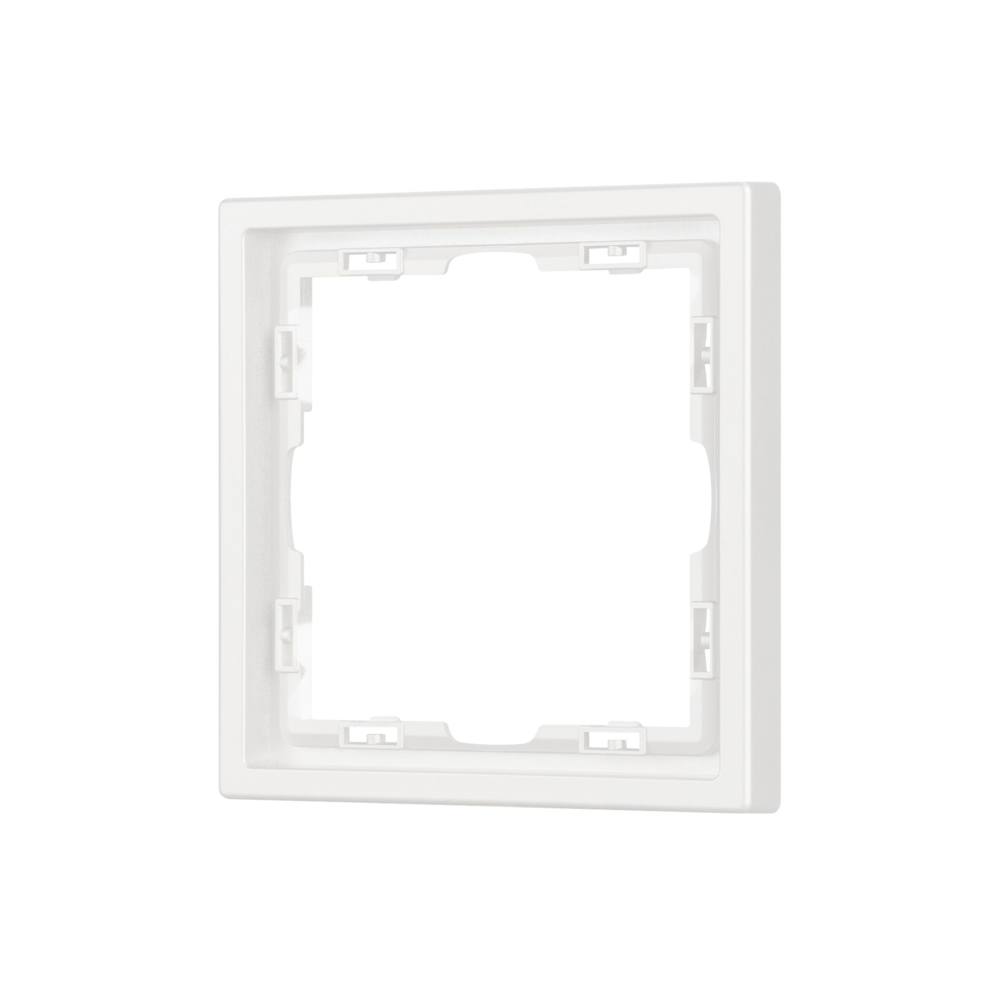 Рамка пластиковая на 1 пост, под встраиваемый механизм. Цвет - белый, с Soft-Touch покрытием. Среднего уровня герметичности IP20. Ориентация монтажа горизонтальная.