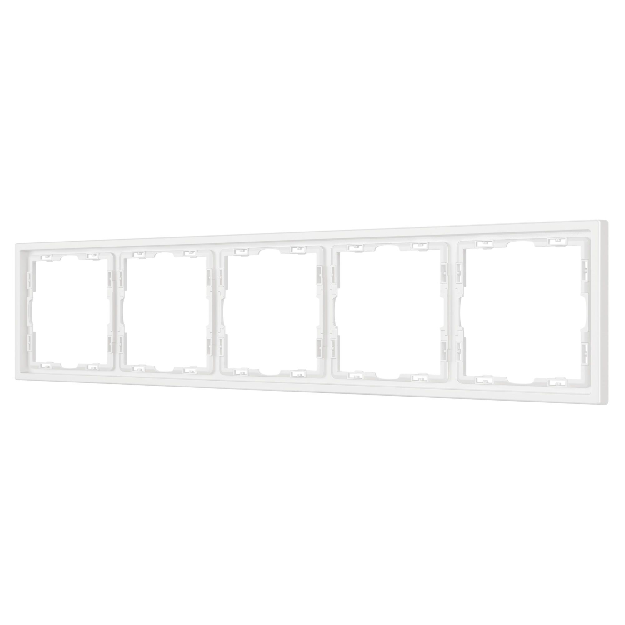 Рамка пластиковая на 5 постов, под встраиваемый механизм. Цвет - белый, с Soft-Touch покрытием. Среднего уровня герметичности IP20. Ориентация монтажа горизонтальная.