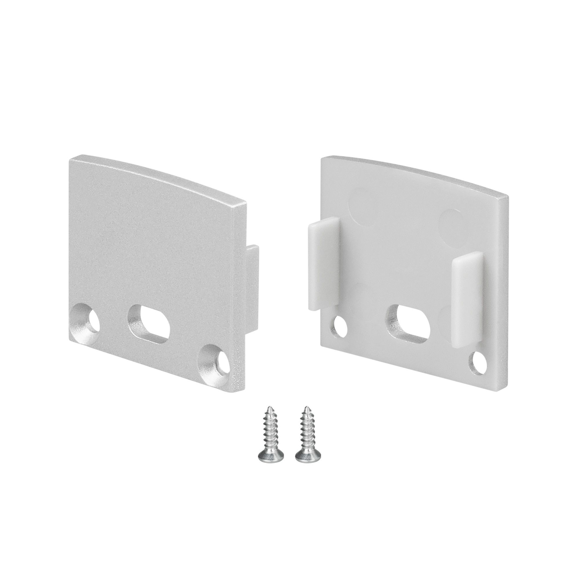 Серебристые заглушки (комплект 2 шт.) с отверстием для профиля FANTOM-W20-H20, FANTOM-W20-H20-EDGE, WIDE-H20. В комплекте 2 заглушки, 2 шурупа. Материал - пластик. Цена за комплект.