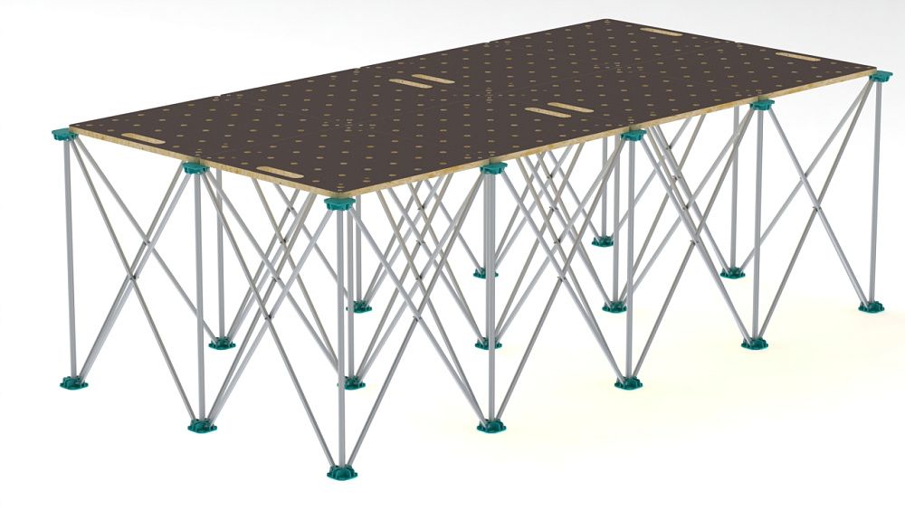 Конструкция стола позволяет быстро собирать столы различной конфигурации повышенной прочности и жёсткости.
