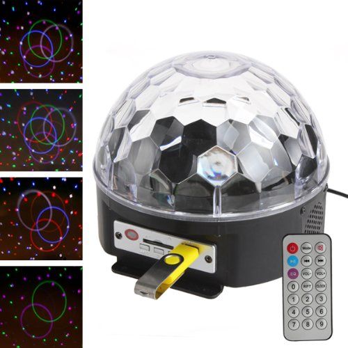 Недорогой 6 цветный диско шар с 2 мощными динамиками и USB / SD card плеером. Флеш карта в комплекте.