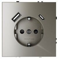 Розетка встраиваемая VOLTUM S70 с заземлением и защитными шторками, 16А, с USB, A+С, (титан)