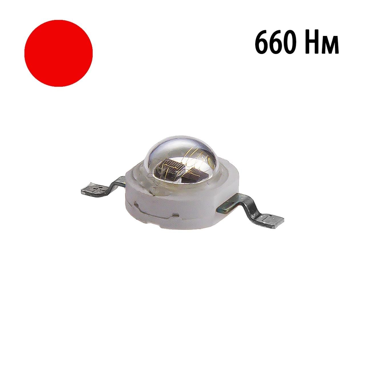 Фито светодиод номинальной мощностью 5Ватт (характеризует размер кристалла), спектр излучения с длинной волны в "красном пике" 660нм. Светодиоды с таким спектром часто используются в самодельных фитолампах, как правило в соотношении 3:1 к синим светодиодам с длиной волы 440нм. Кристал светодиода защищен первичной линзой. Если же требуется сфокусировать свет от фитолампы особенным образом и создать иную геометрию света - то вам стоит подумать о том какие линзы для светодиодов выбрать для этих целей. А так же не забывайте что заднюю часть светодиода необходимо обработать термопастой или термоклеем перед установкой. И самое главное - не забывайте за ранее продумать сколько светодиодов будет в вашей самодельной фитолампе, какие спектры будут использоваться и каким током вы планируете запитать всю эту цепь (или же разделить на несколько электрических цепей).