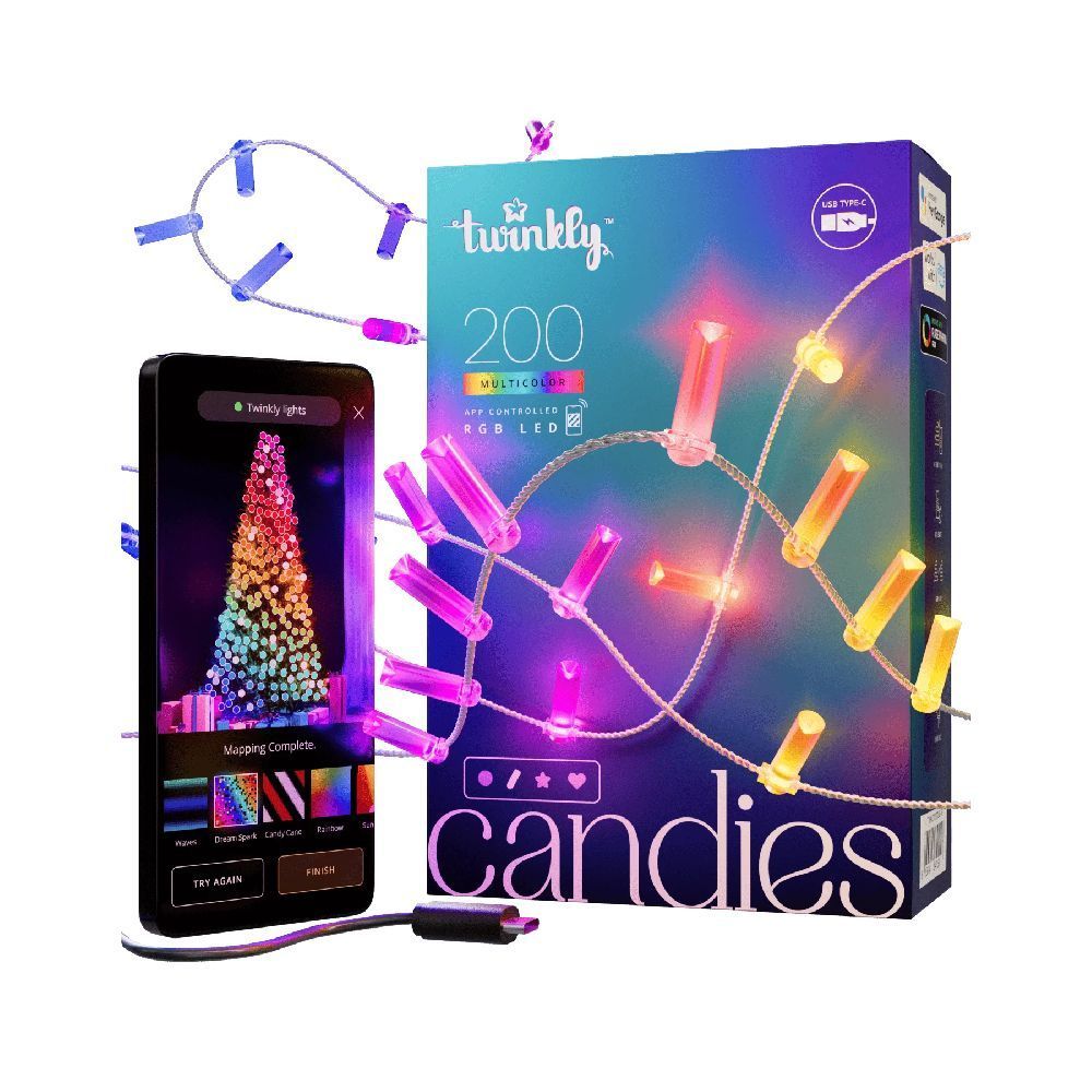 Гирлянда Twinkly Candies Candles 200 диодов, 7 мм в форме свечи, RGB, расстояние между лампами 6 см, прозрачный провод, BT+WiFi, IP20, питание от USB-C