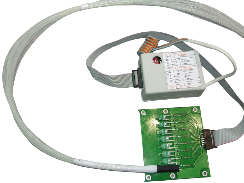 8-ми канальный контроллер ALP-8.10 на сверхъярких светодиодах увеличенной мощности (8x80mA) предназначен для создания эффекта "мерцающее звездное небо" на площади до 12-14 м2 (до 1200 нитей 0,5мм, до 800 нитей 0,75мм) Возможен выбор 1 из 32 вариантов глубины и скорости мерцания "звезд" (микропереключателем на плате контроллера). 220В Габариты,мм - 90х65х30 Бессрочная гарантия Для наглядности контроллер показан с 1 пучком оптических нитей. |