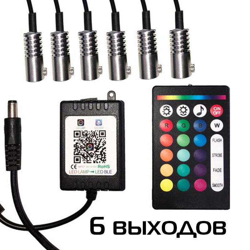 Источник света для оптоволокна RGB с управлением от пульта дистанционного управления или со смартфона через Bluetooth.