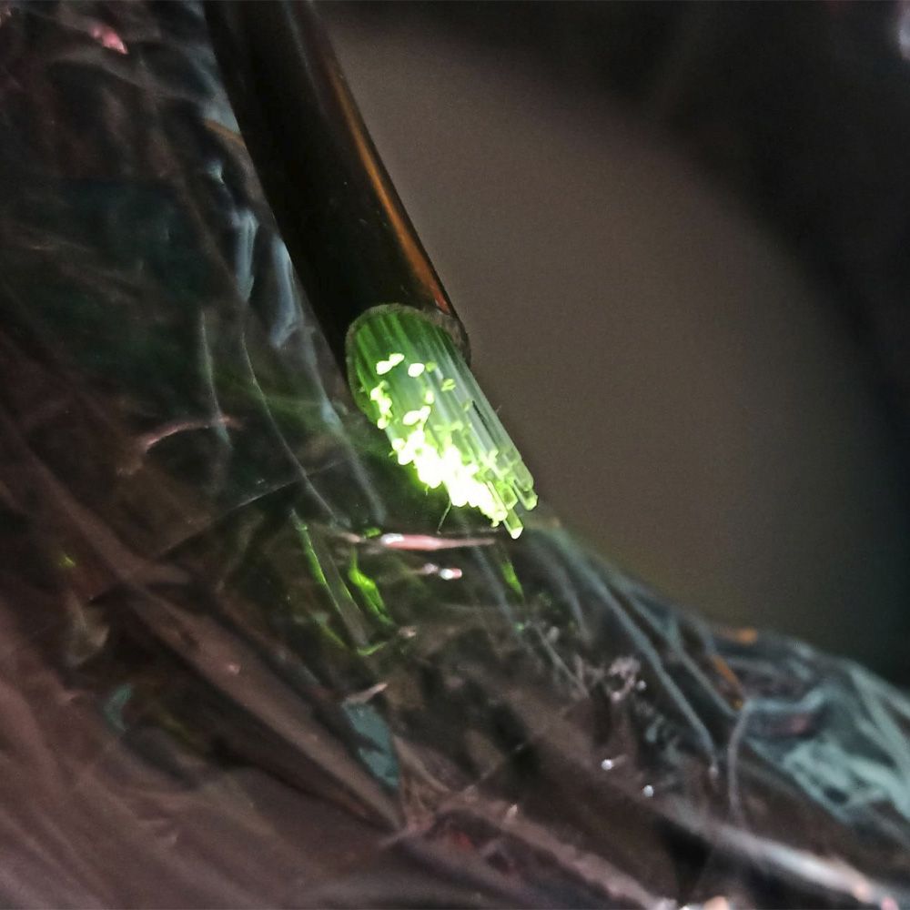 Фибероптический кабель торцевого свечения в черной оболочке.50 волокон * 0,75 мм. Катушка 25 метров.