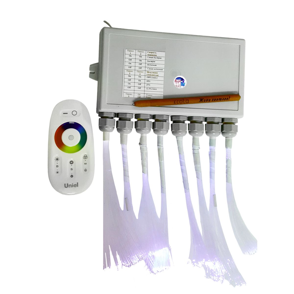 Возможен выбор 1 из 32 вариантов глубины и скорости мерцания "звезд" - переключателем на плате контроллера или выносным переключателем (опционально).