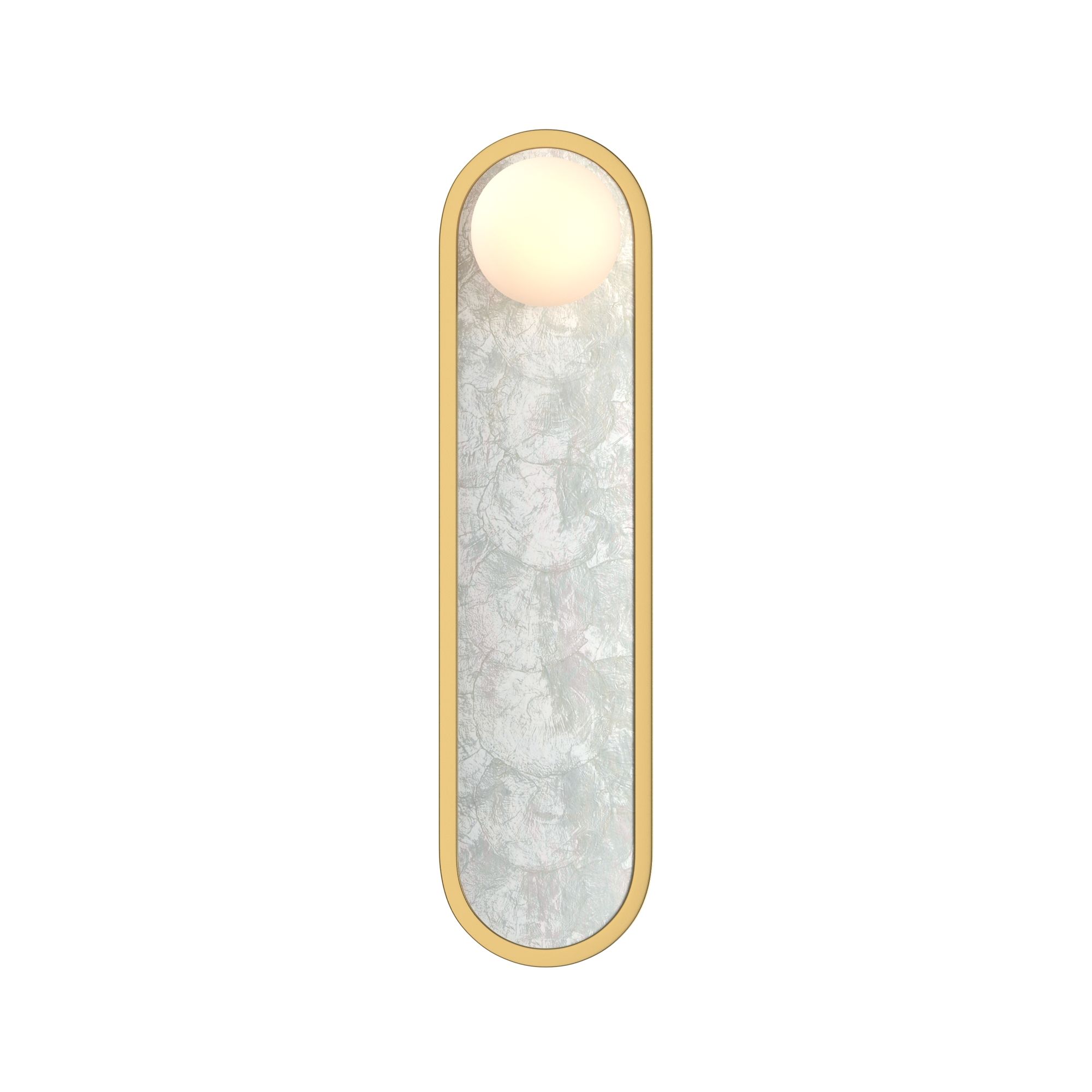 В серии представлены настенные светильники двух размеров и двух поколений. Декоративная мозаика из натурального перламутра играет нежнейшими бликами. Контраст текстур — переливы перламутра и матовая поверхность металла цвета латуни. LED-лента под акриловым рассеивателем создаёт ореол на стене. Предусмотрено трехступенчатое переключение температуры света через вкл-выкл (2700-3000-4000K), позволяющее создавать желаемую атмосферу. Эффектно светильники смотрятся и в комбинации друг с другом.