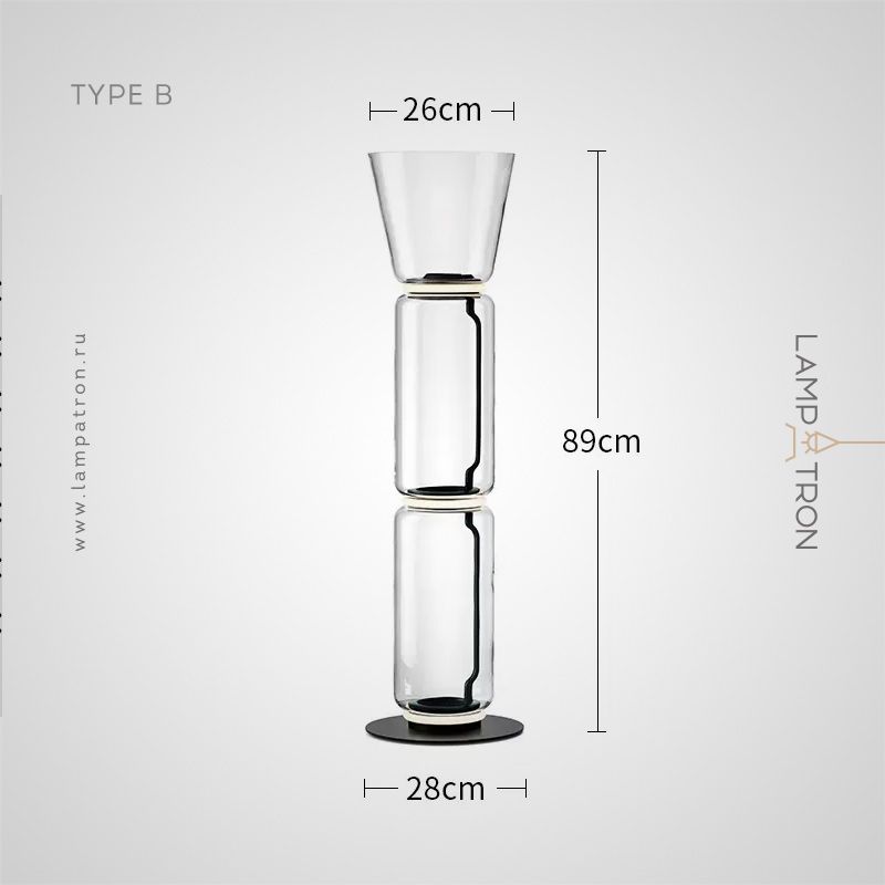 Серия светодиодных настольных ламп из прозрачных стеклянных скругленных цилиндров c подсветкой сверху и снизу