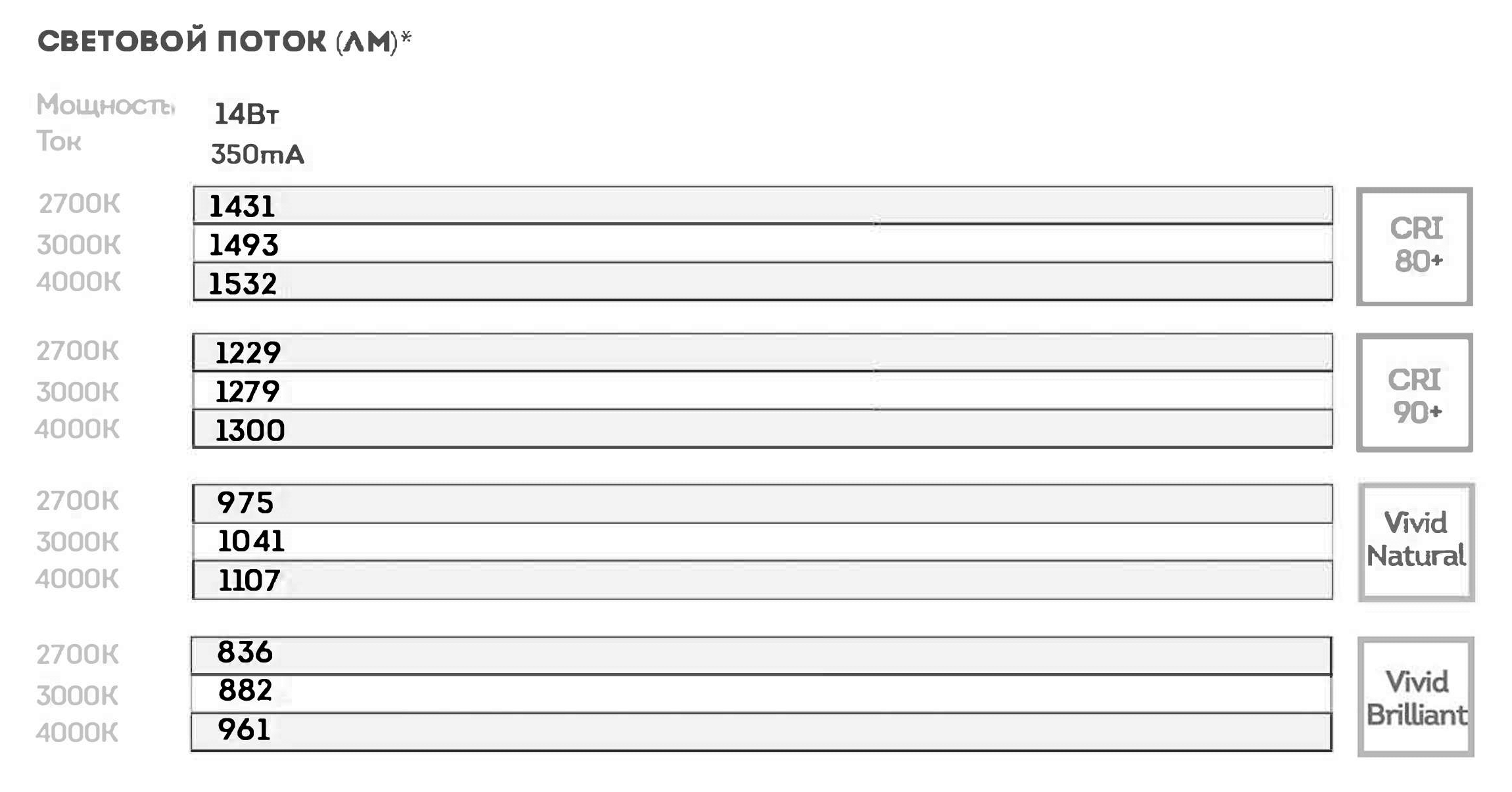 Серия VIVID - укомлектована светодиодами CITIZEN со специальным индексом цветопередачи, разделяется: