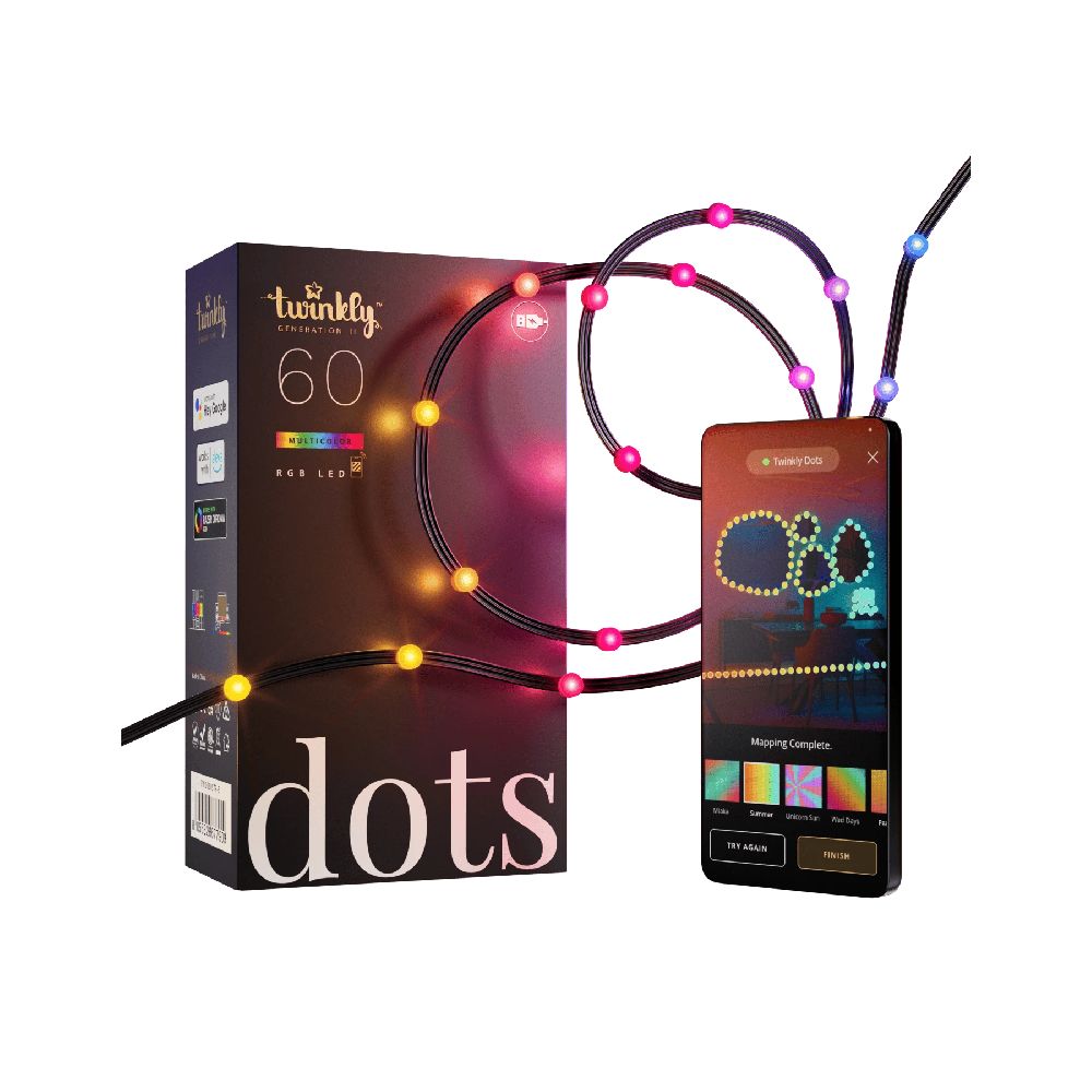 Откройте для себя безграничные возможности декора с Twinkly Dots! Эти миниатюрные, но невероятно яркие светодиоды, расположенные на гибкой черной ленте, позволят вам создать уникальные световые композиции на любой поверхности. С помощью инновационного приложения Twinkly App вы сможете выбирать из миллионов цветовых комбинаций и создавать динамические эффекты, которые преобразят ваше пространство в нечто волшебное и незабываемое.