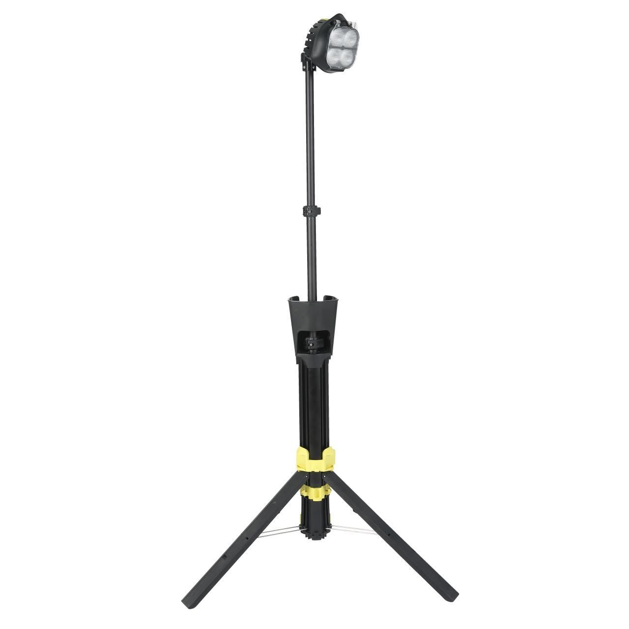 Прожектор на штативе оснащен съемной литиевой батареей, легкой и компактной;