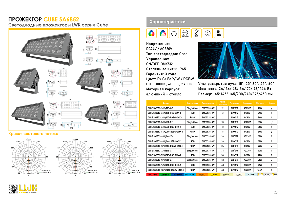 Светильник применяется для статической или управляемой динамической подсветки сооружений, архитектуры, билбордов и т.д.