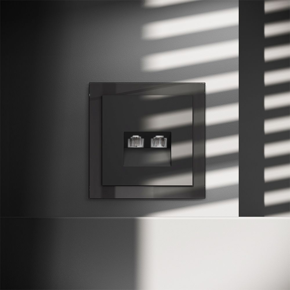 Розетка компьютерная встраиваемая VOLTUM S70 двойная RJ45+RJ45 кат.6, (черный матовый)