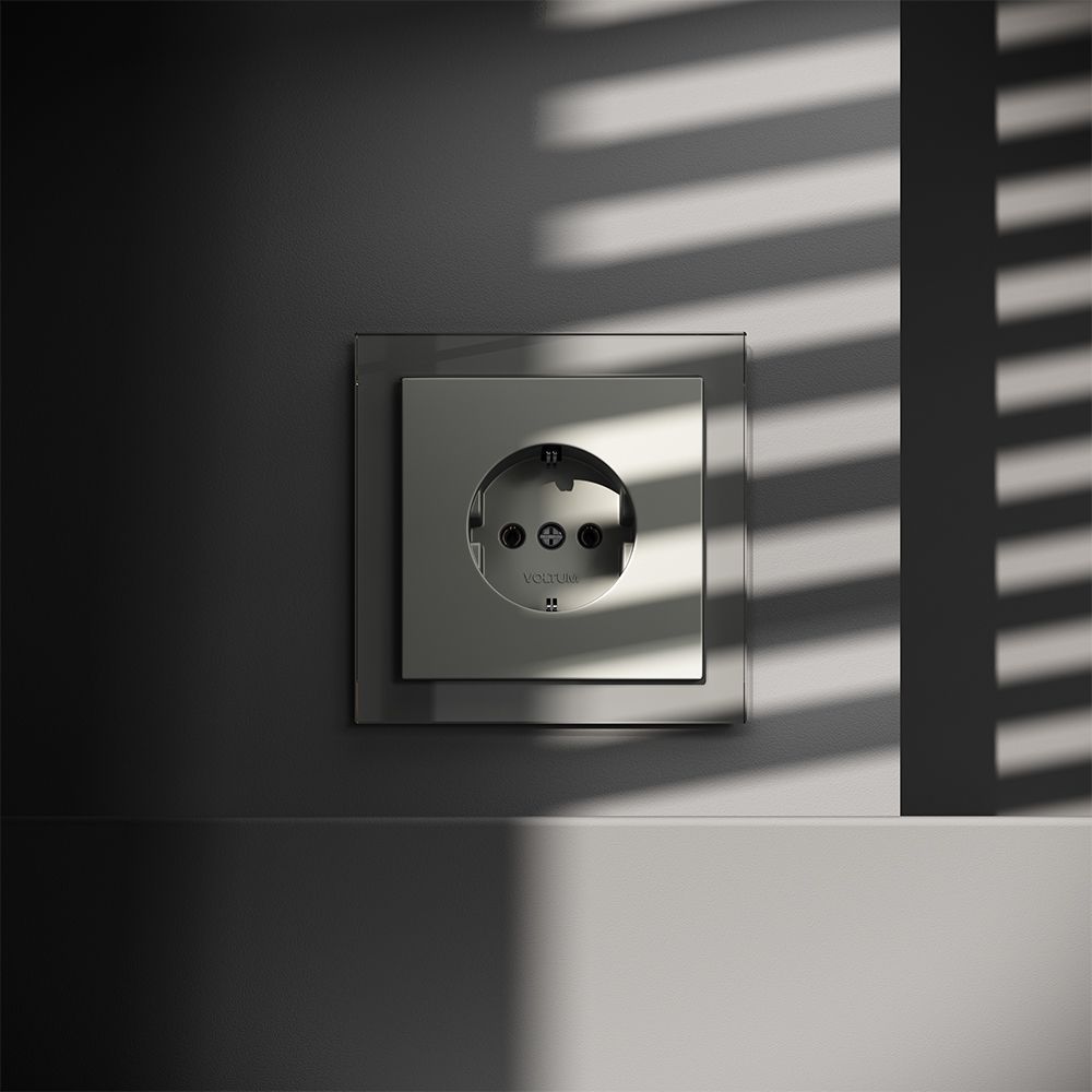 Розетка встраиваемая VOLTUM S70 с заземлением 16А, (сталь)