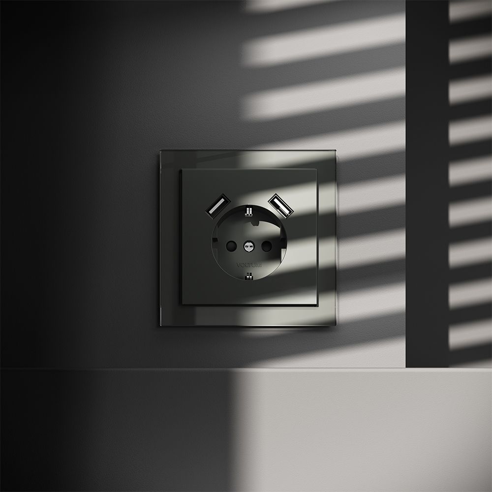 Розетка встраиваемая VOLTUM S70 с заземлением и защитными шторками, 16А, с USB, A+A, (титан)