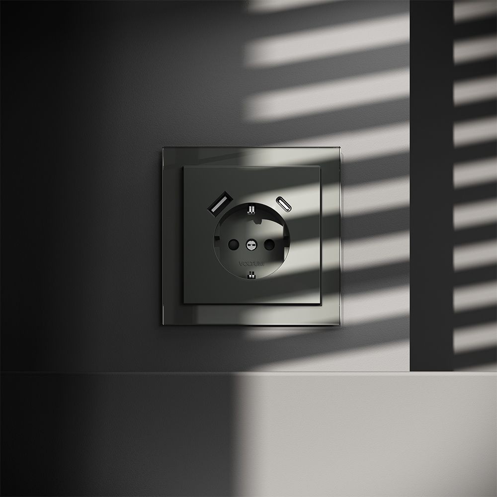 Розетка встраиваемая VOLTUM S70 с заземлением и защитными шторками, 16А, с USB, A+С, (титан)
