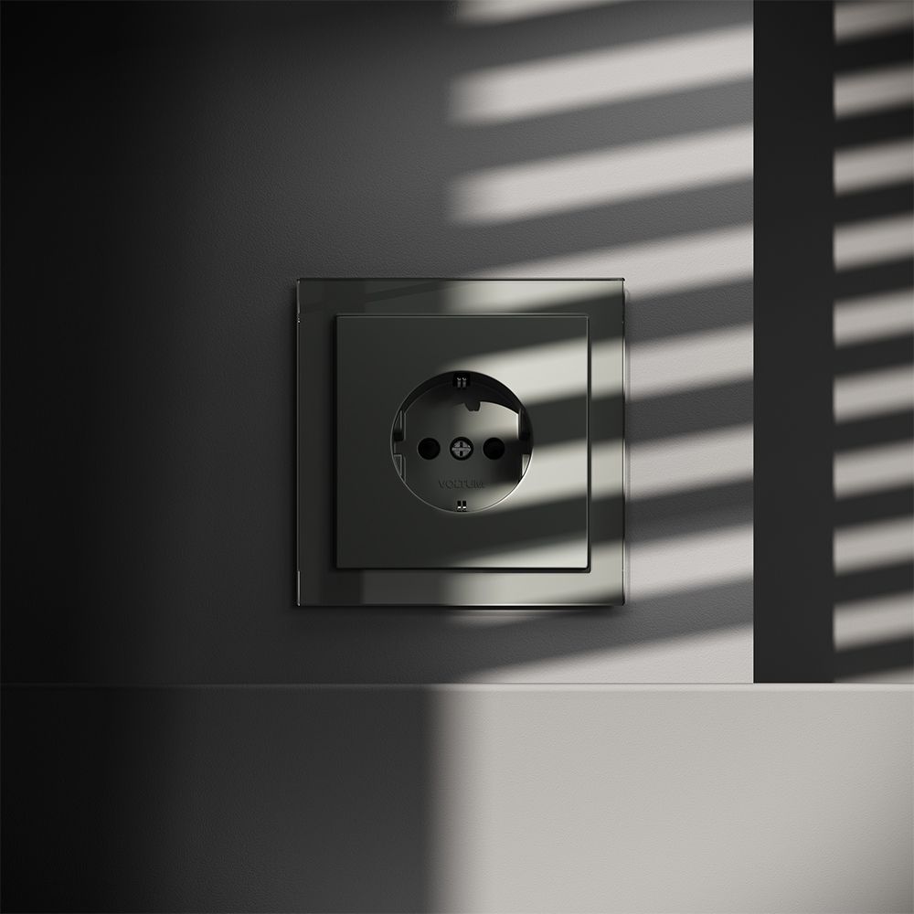 Розетка встраиваемая VOLTUM S70 с заземлением и защитными шторками, 16А, (титан)