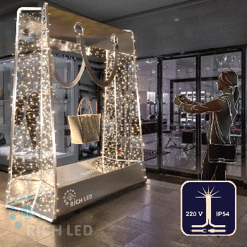Светодиодная гирлянда Rich LED 10 м, 100 LED, 220 В, соединяемая, мерцающая, белая, белый провод,
