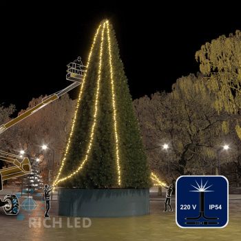 Светодиодная гирлянда Rich LED 3 Нити по 20 м с 2-х канальным контр., 600 LED, 24 В, теплая белая, черный провод,