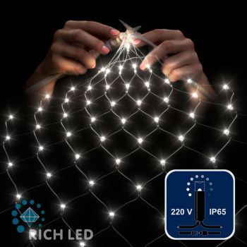 Светодиодная сетка Rich LED 2*1.5 м, белая, 192 LED, 220 B, прозрачный провод, колпачок